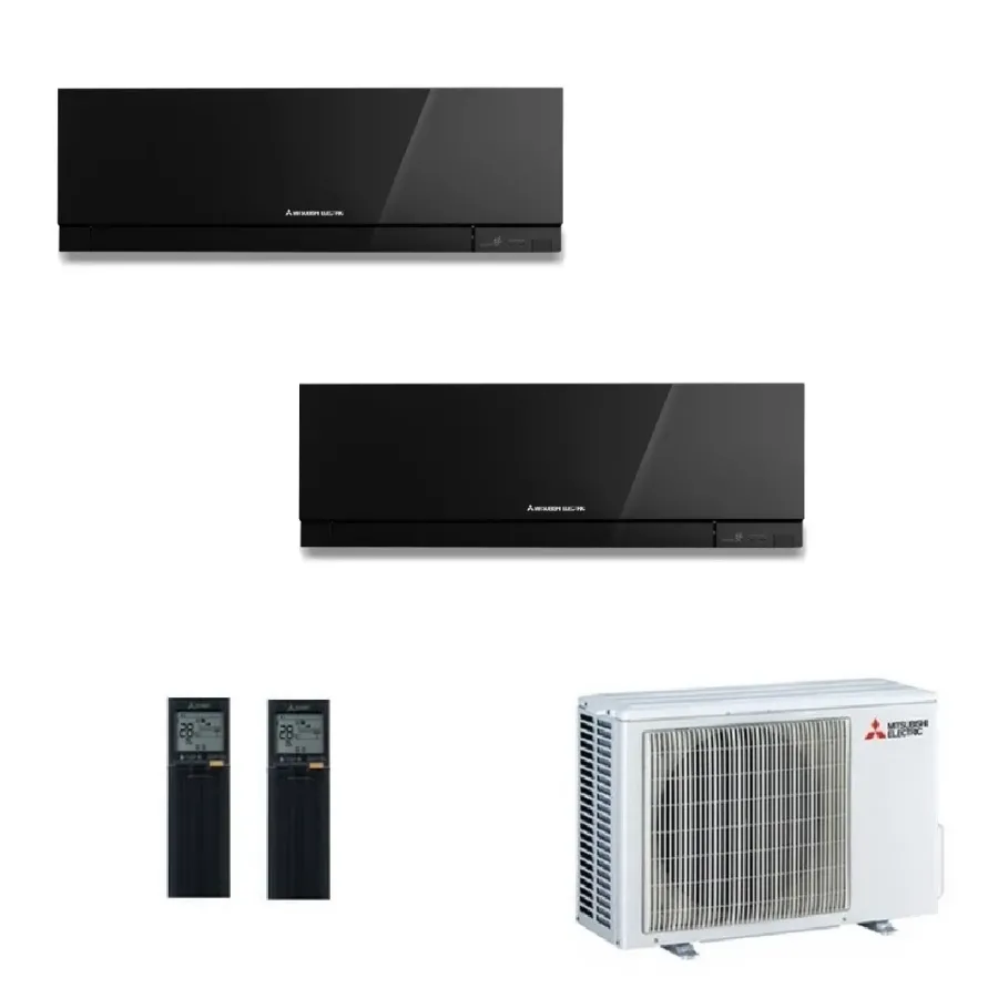 Mitsubishi Duo Split 7000+15000 Btu MXZ-2F53VF4 MSZ-EF22VGKB MSZ-EF42VGKB Klimageräte Schwarz Premium WiFi