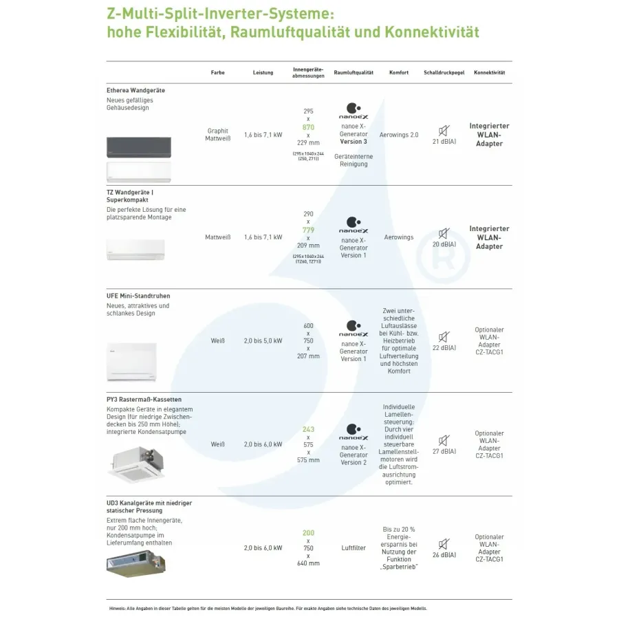 - Flüsterleise! Nur 20 dB(A) (TZ20, TZ25, TZ35) TZ Kompakt WiFi Inverter-Hocheffizienz-Wärmepumpe, hervorragende geräuscharme Klimaregelung, zuverlässige, kalte Wärme mit Luftentfeuchter. Energiebewertung CU-2Z50TBE A+++
