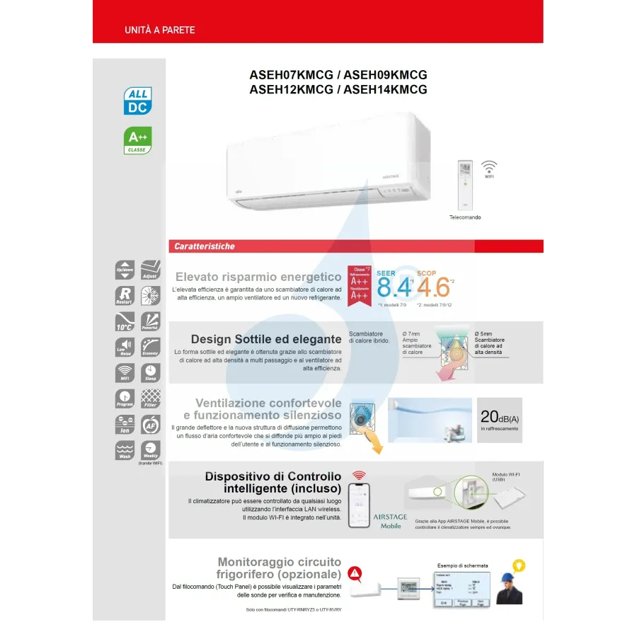 Klimaanlagen Fujitsu Duo Split Serie KMCG WiFi 9000+9000 Btu Heizung mit Wärmepumpe mit Niedrigenergieverbrauch Invertertechnologie