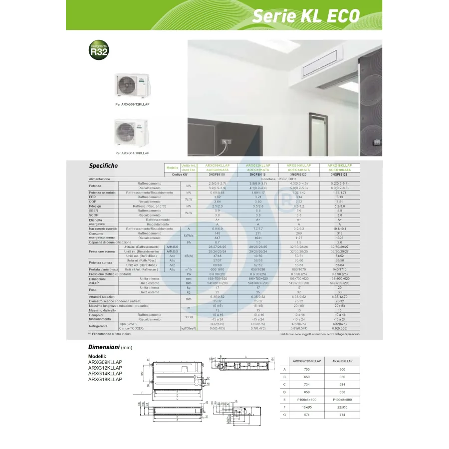 Fujitsu Mono Split Kanalisierbar 18000 Btu ARXG18KLLAP AOEG18KATA Klimaanlage Serie ECO KL Kanal R-32 Einphasig 220v