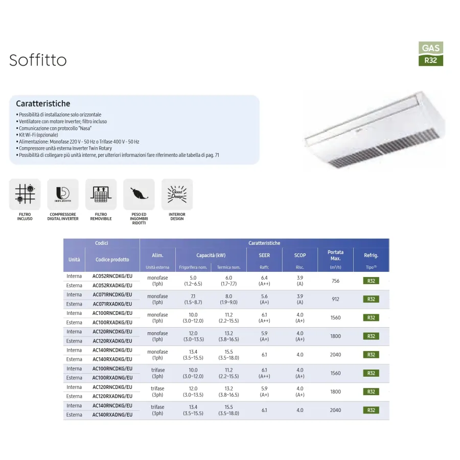 Klimaanlagen Samsung Mono Split Serie Decke WiFi Optional 40800 Btu Heizung mit Wärmepumpe mit Niedrigenergieverbrauch Invertertechnologie