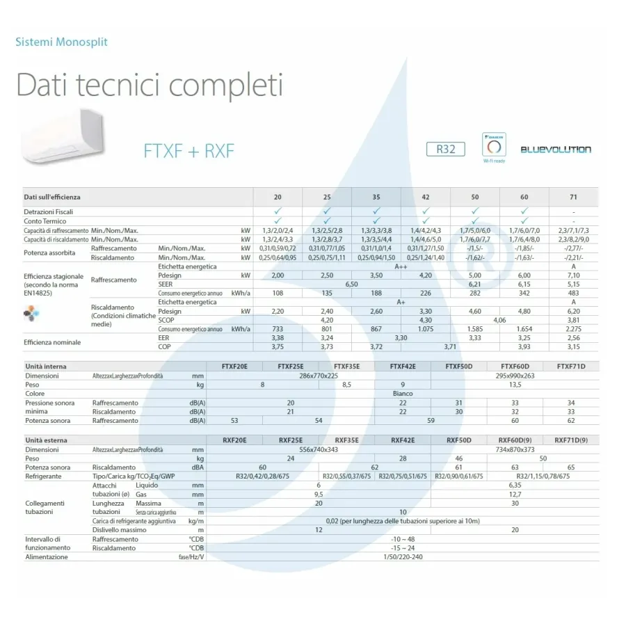 Daikin Mono Split 7.1 kW FTXF71F RXF71D9 Klimaanlagen Serie Sensira Weiß WiFi Optional 24000 Btu R-32