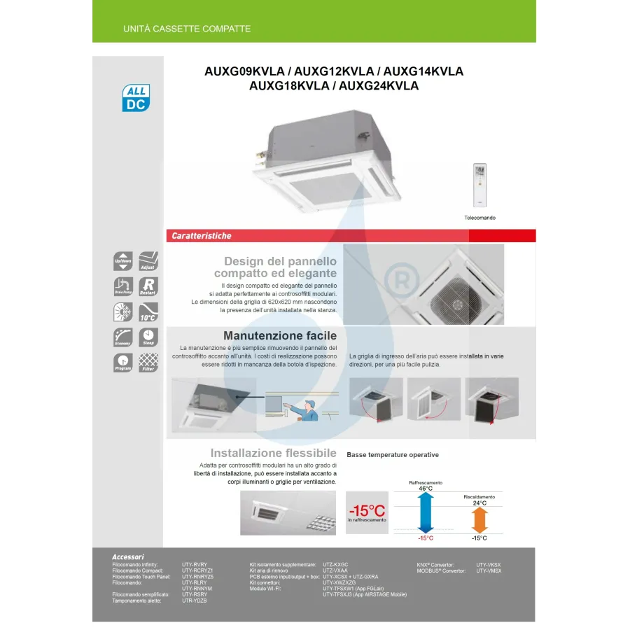 Interne Kassetteneinheit AUXG09KVLA 9.000 BTU 2.6 kW Kompakte KV-Serie