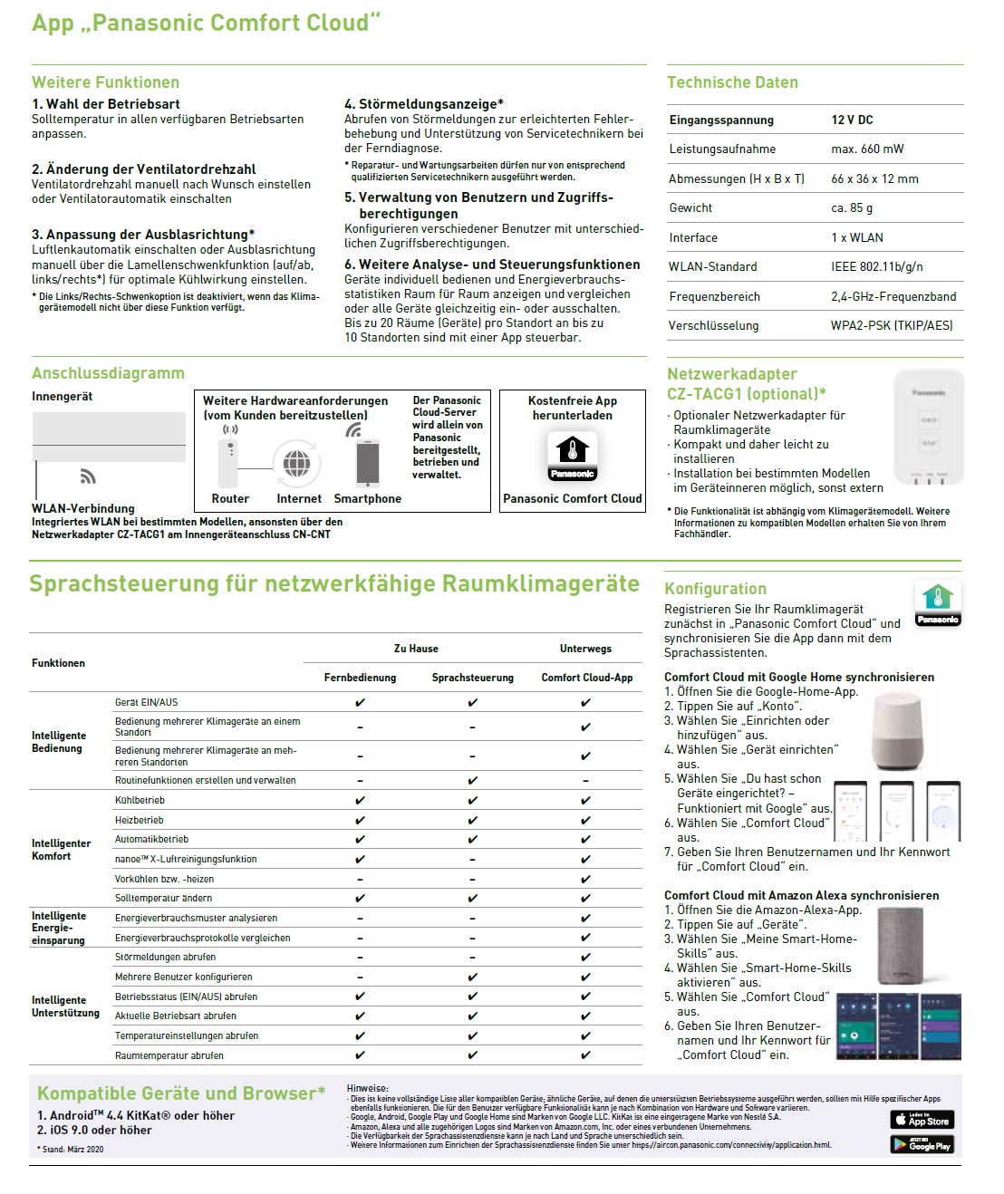 Panasonic Equipment CZ-TACG1 CZ-TACG1 Btu CZ-TACG1 PANASONIC Wi-Fi KIT for remote control of air conditioners. The CZ-TACG1 Wi-Fi Kit allows you to remotely manage your home air conditioners thanks to the new Heat & Cool app from Panasonic AC Controller, which is compatible with Android and iOS devices. With the Panasonic Heat & Cool app, you can fully control the climate control of your property anytime, from anywhere in the world. Available in 19 European languages: Bulgarian, Croatian, Czech, Danish, German, English, Estonian, Finnish, French, Greek, Hungarian, Italian, Norwegian, Polish, Portuguese, Slovenian, Spanish, Swedish, and Turkish. Access can be granted to multiple users, and different control levels can be applied to each additional user.