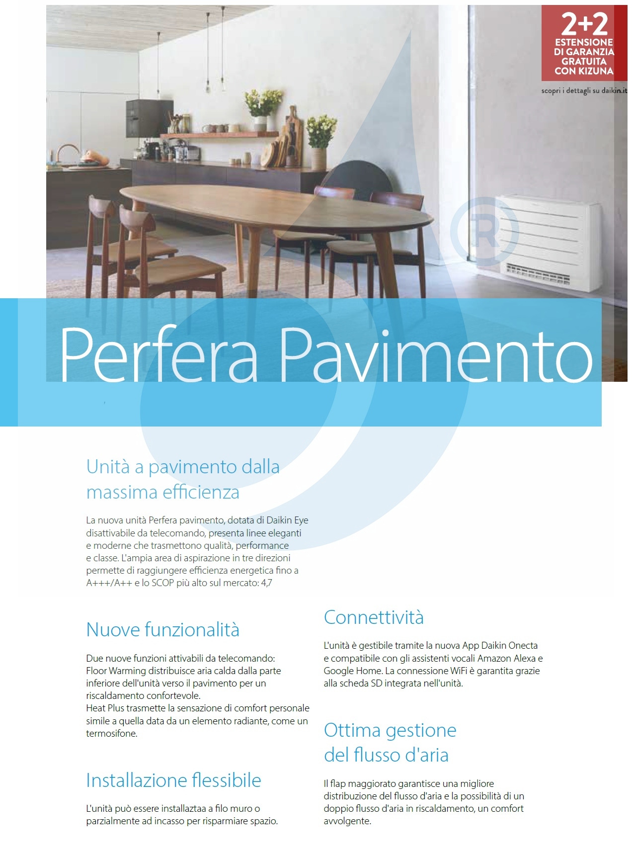 The underfloor heating function optimizes convection by distributing warm air from the underside of the unit.