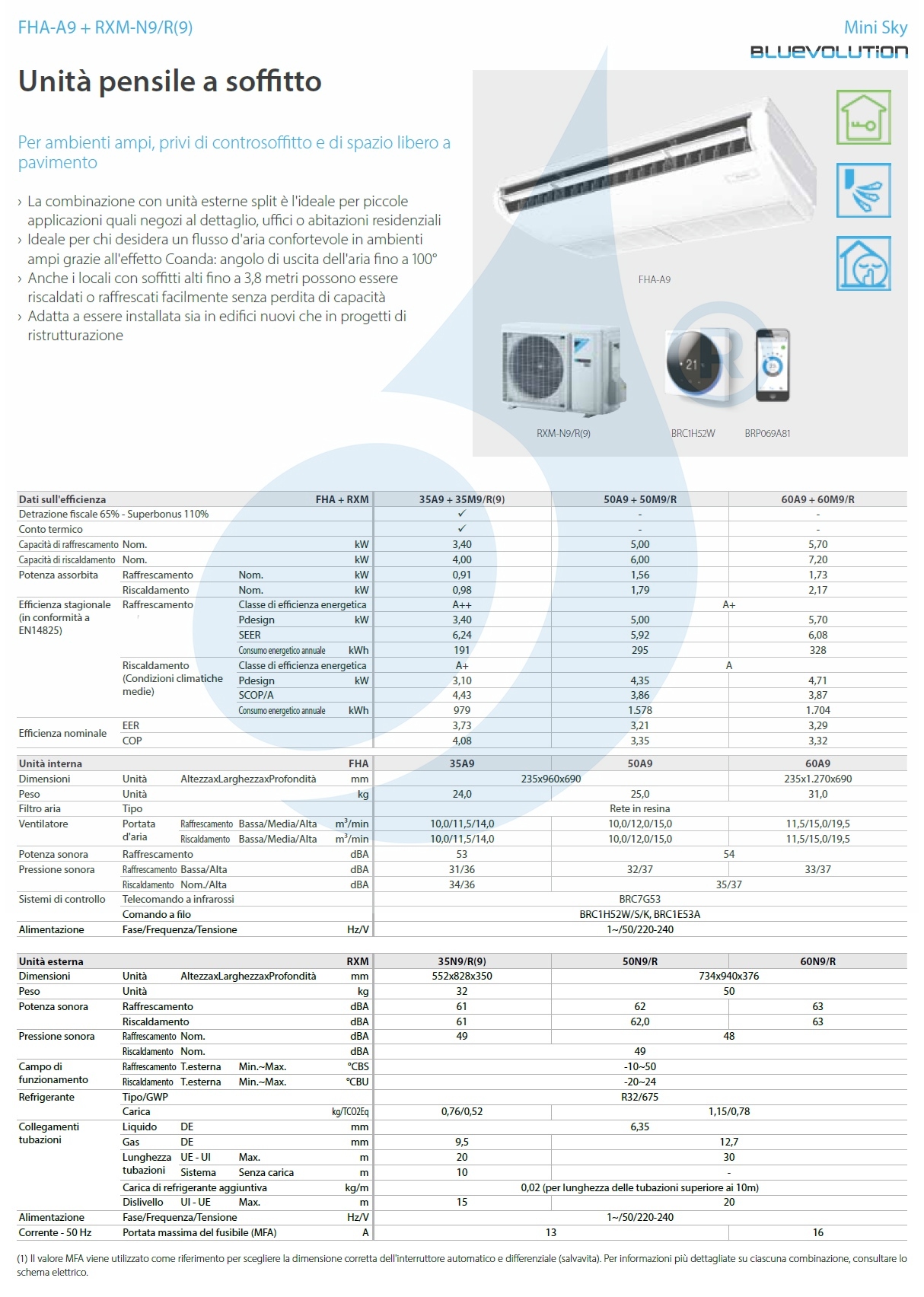 Indoor unit FHA50A9 18000 Btu The BTU ratings and square meter capacities are provided to simplify the technical data and improve readability. Please contact our customer service department for further information.