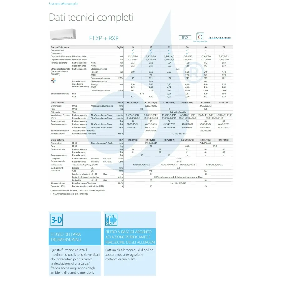 Daikin Mono Split Comfora FTXP WiFi 7000 Btu air conditioner with low-voltage absorption heat pump (high energy efficiency class), dehumidifier function, air purification with elimination of viruses and bacteria
