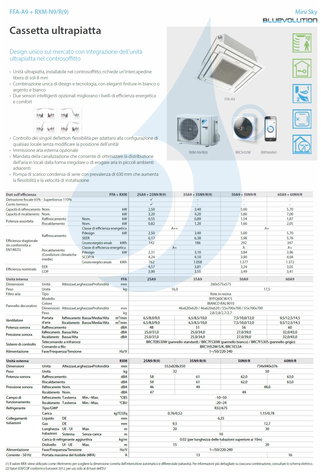 Indoor unit FFA35A9 12000 Btu External Unit RXM35A9 12000 Btu An excellent solution for comfort in all rooms of your home or office.Daikin Ultra-Slim 4-Way Cassette Indoor Units FFA-A9 + RXM-N9