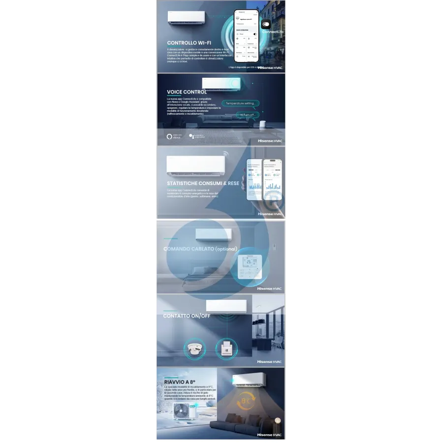 Hisense air conditioners can be conveniently managed from inside or outside the home using a mobile device and a Wi-Fi connection. ConnectLife is the easy-to-use app with an intuitive interface that lets you control your air conditioner from anywhere. The app is available for iOS and Android.