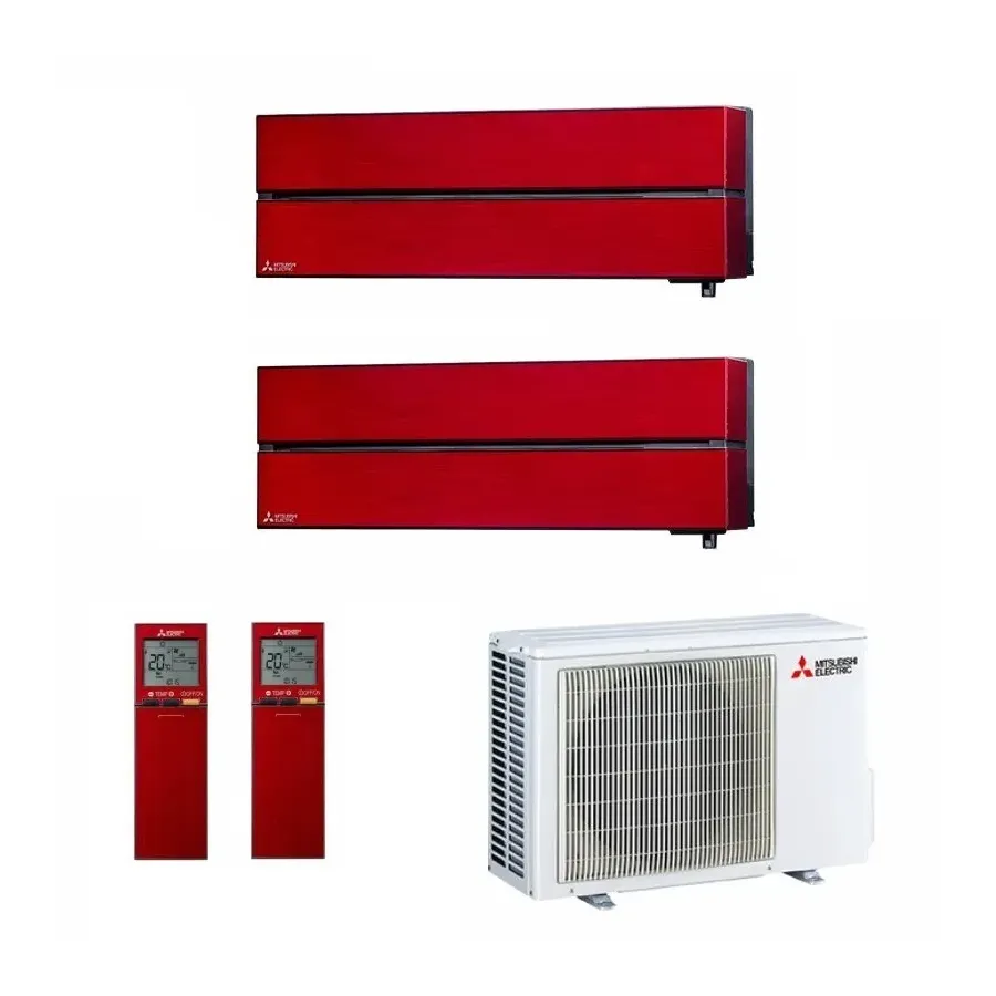 Mitsubishi Duo Split Diamond Series air conditioner, Ruby Red, WiFi, 9000+9000 BTU. High-efficiency inverter air conditioner/heat pump with control unit. Air conditioner with dehumidifier – hot and cold. The new Kirigamine Style - Diamond series is an excellent solution for modern furniture and is available in three colors: Ruby Red, Pearl White, and Onyx Black.