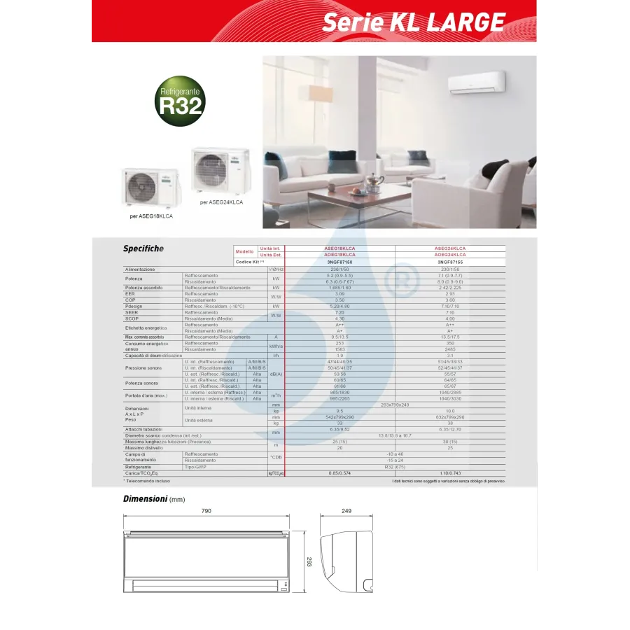 Indoor unit ASEG24KLCA 24000 Btu Outdoor unit AOEG24KLCA 24000 Btu An excellent solution for comfort in all areas of your home or office.KL 18-24 Series