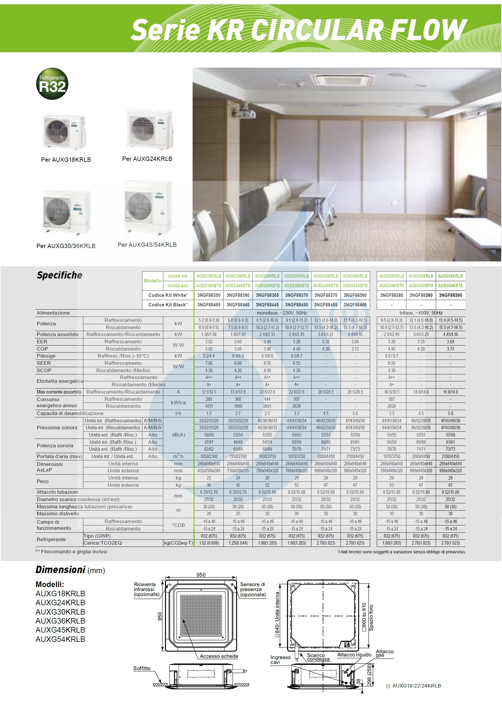 Indoor unit AUXG24KRLB 24000 Btu Outdoor unit AOEG24KBTB 24000 Btu Excellent solution for air conditioning 2 rooms in your home or office, or a single very large room.90x90 KR Circular Flow Cassette Unit