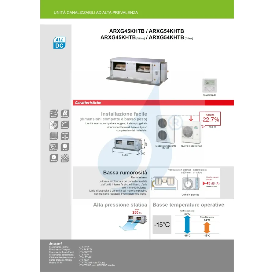 Indoor unit ARXG45KHTB 45000 Btu Outdoor unit AOEG45KRTA 45000 Btu Excellent solution for air conditioning 2 rooms in your home or office, or a single very large room.KH Canal Series High Pressure