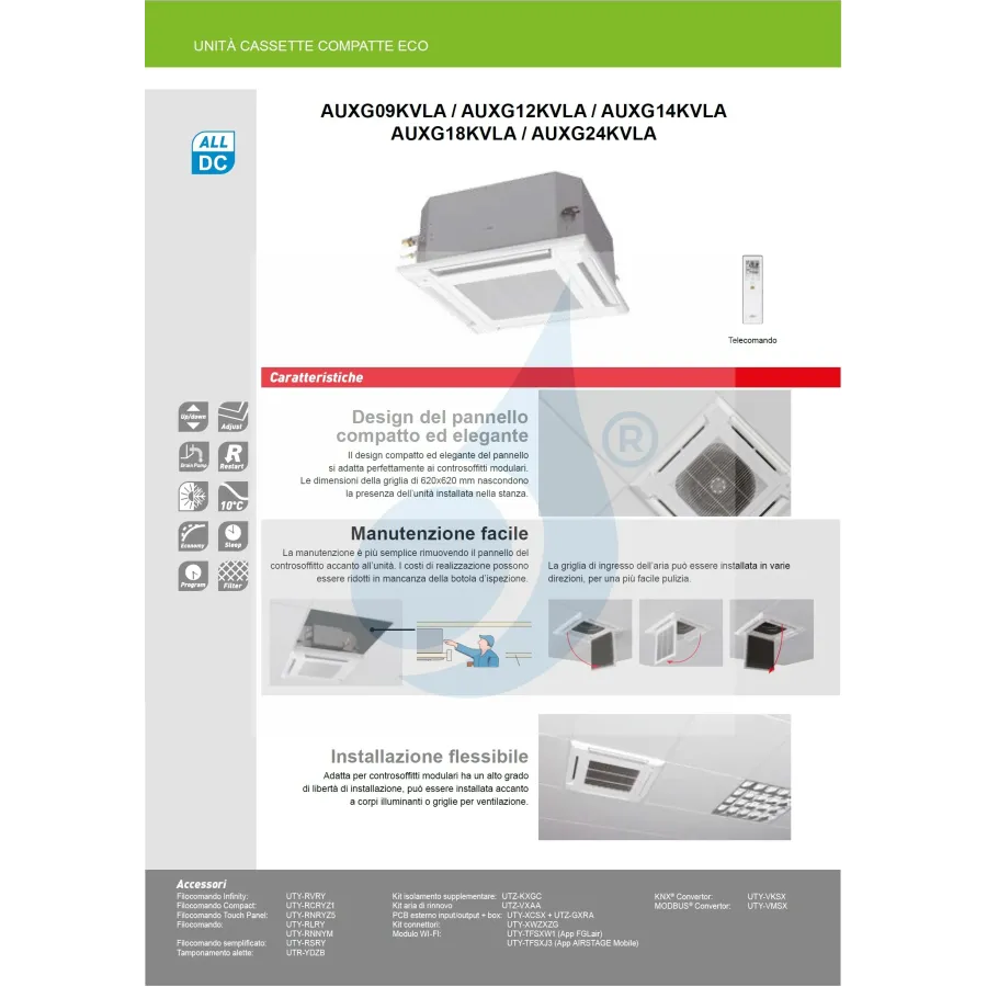 Internal cassette unit AUXG14KVLA 14,000 BTU 4.2 kW Compact KV series