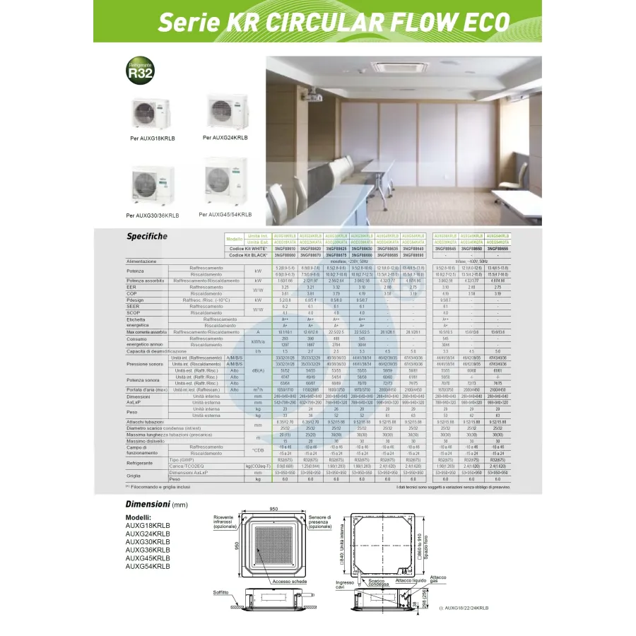 Indoor unit AUXG30KRLB 30000 Btu Outdoor unit AOEG30KATA 30000 Btu The ultimate solution for air conditioning your home: up to three rooms with many variations and solutions.90x90 ECO KR Circular Flow Cassette Unit Series