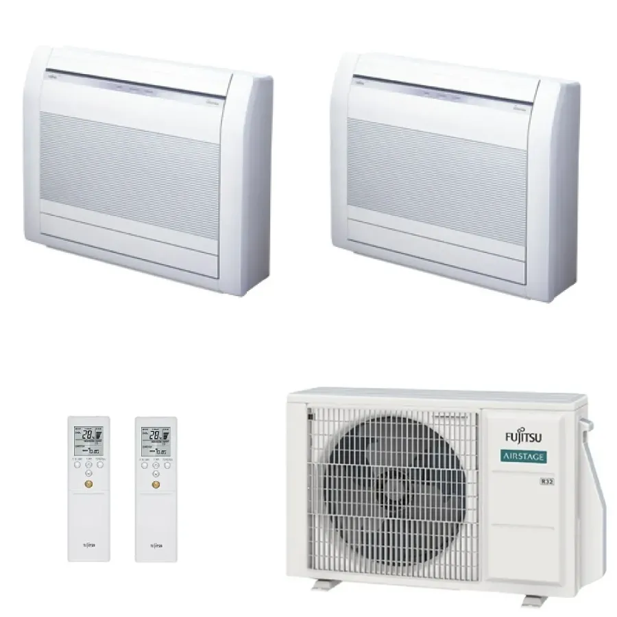 Fujitsu Duo Split Series Underfloor Air Conditioners KV WiFi Optional 9000+12000 Btu Heating with Heat Pump with Low Energy Consumption Inverter Technology ideal for attics or installations under windows, optimal for heating due to its position near the floor