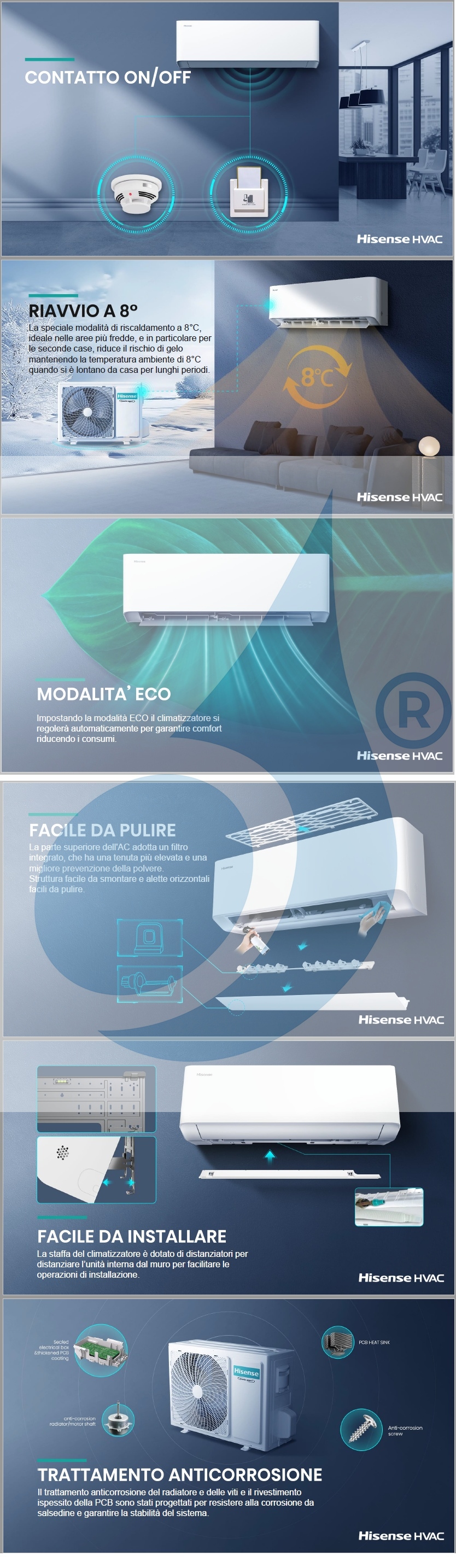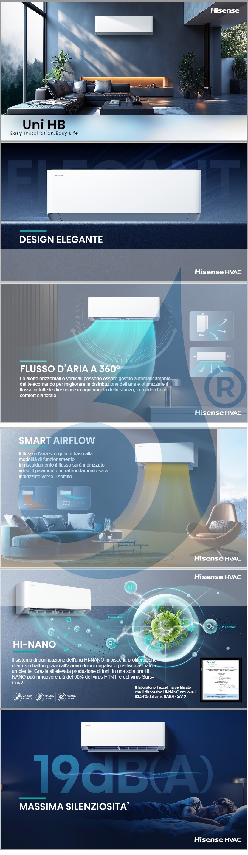 - Hisense inverter air conditioners feature advanced technologies to ensure efficiency, energy savings, quiet operation and comfort.