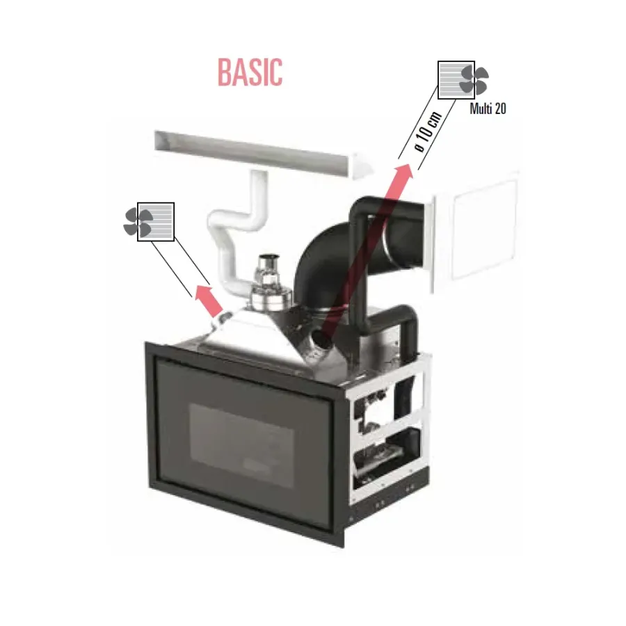 Comfort Air® efficiently transports warm air (80 °C) to other rooms up to a maximum distance of 8 meters. Unlike conventional systems where the ventilation openings must be placed high up, Comfort Air® allows for flexible placement of the ventilation openings (even near the floor).