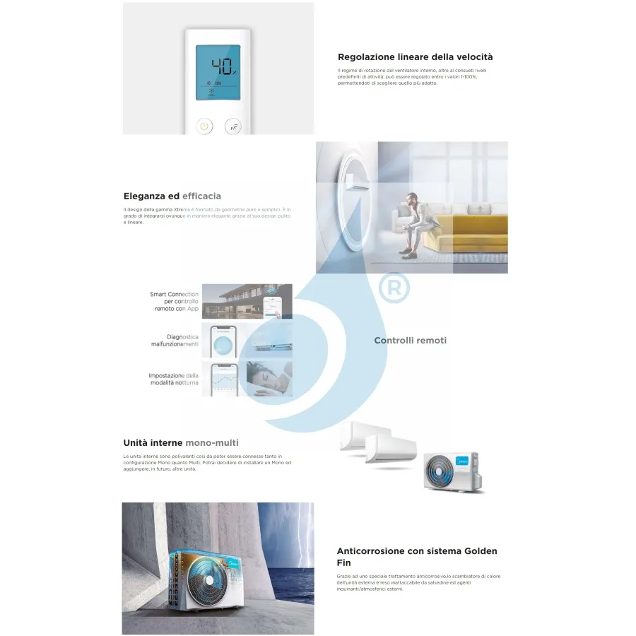 Midea Mono Split Xtreme Pro WF WiFi 24000 Btu air conditioner with highly efficient, low-energy heat pump and dehumidifier Recommended for environments with an indoor unit up to 72 sq m. With WiFi control and original accessories