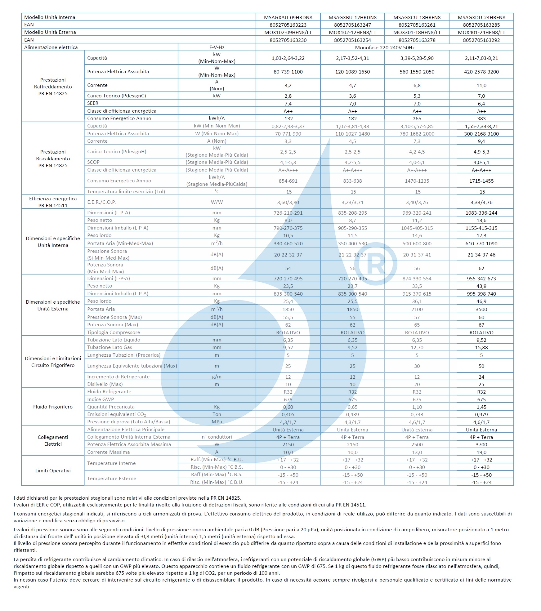 Indoor unit MSAGXDU-24HRFN8 24000 Btu Outdoor unit MOX401-24HFN8/LT 24000 Btu An excellent solution for comfort in all rooms of your home or office.Evolution series