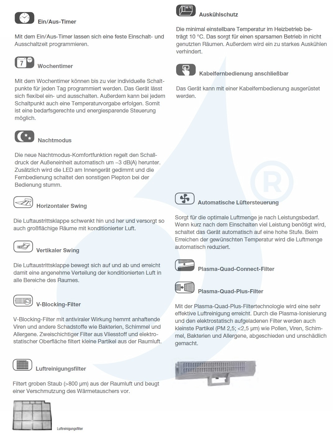 These air conditioners offer a high level of comfort thanks to their quiet operation at only 19 dB. The double deflector ensures optimal air distribution, preventing any disturbance to the room's occupants. The 3D i-see sensor allows you to adjust the airflow to direct or indirect, depending on the room's occupants.It offers a range of special features such as self-diagnosis, automatic restart, a weekly 24-hour timer program, a silent mode, a night mode, and rapid cooling. The double deflector prevents air from being blown directly at people's height, directing the air from the right or left side.