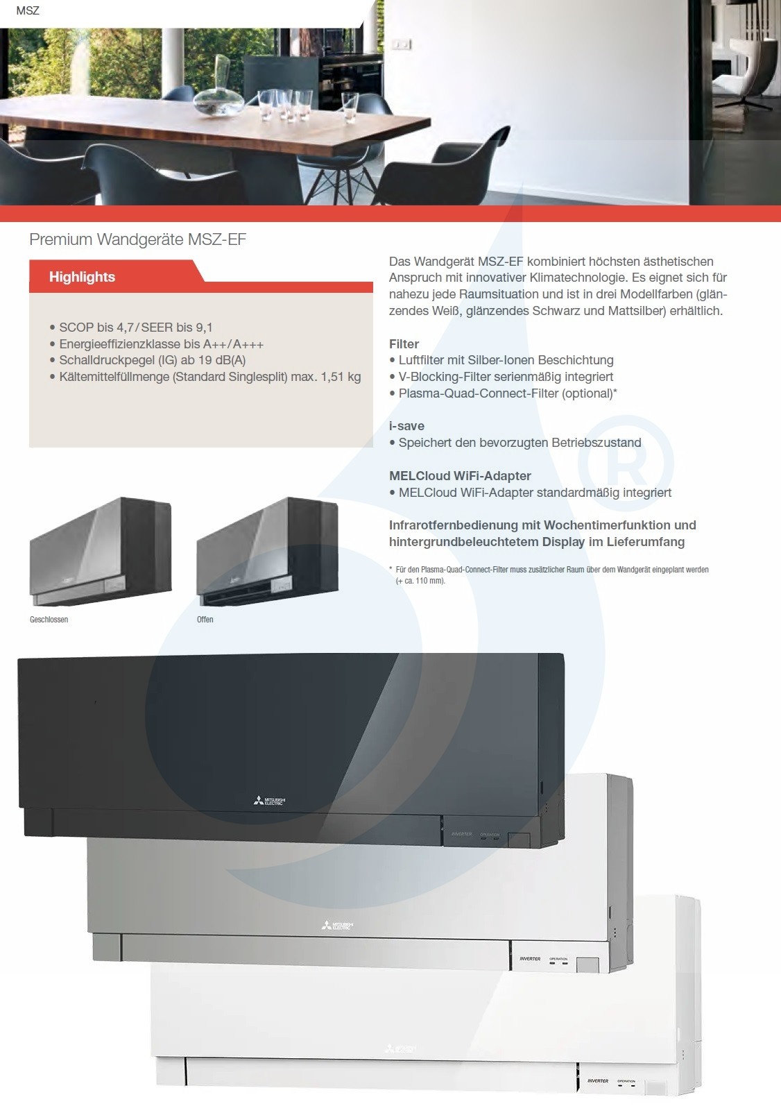 Download Technical Data Sheet Multi Split Premium Series MSZ-EF Wall Mount Kirigamine ZEN
