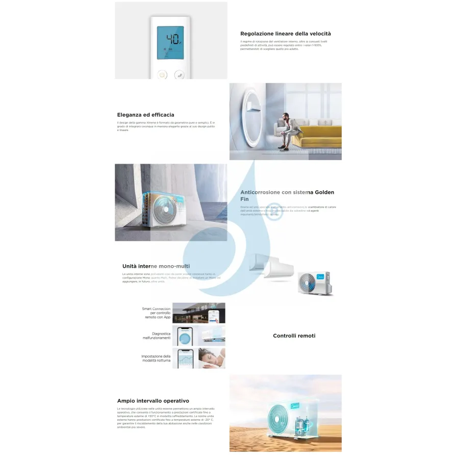 Midea Penta Split Xtreme Pro GREEN WiFi air conditioners (also known as Xtreme Pro Tech series), highly efficient heat pump heating with low energy consumption, dehumidifier