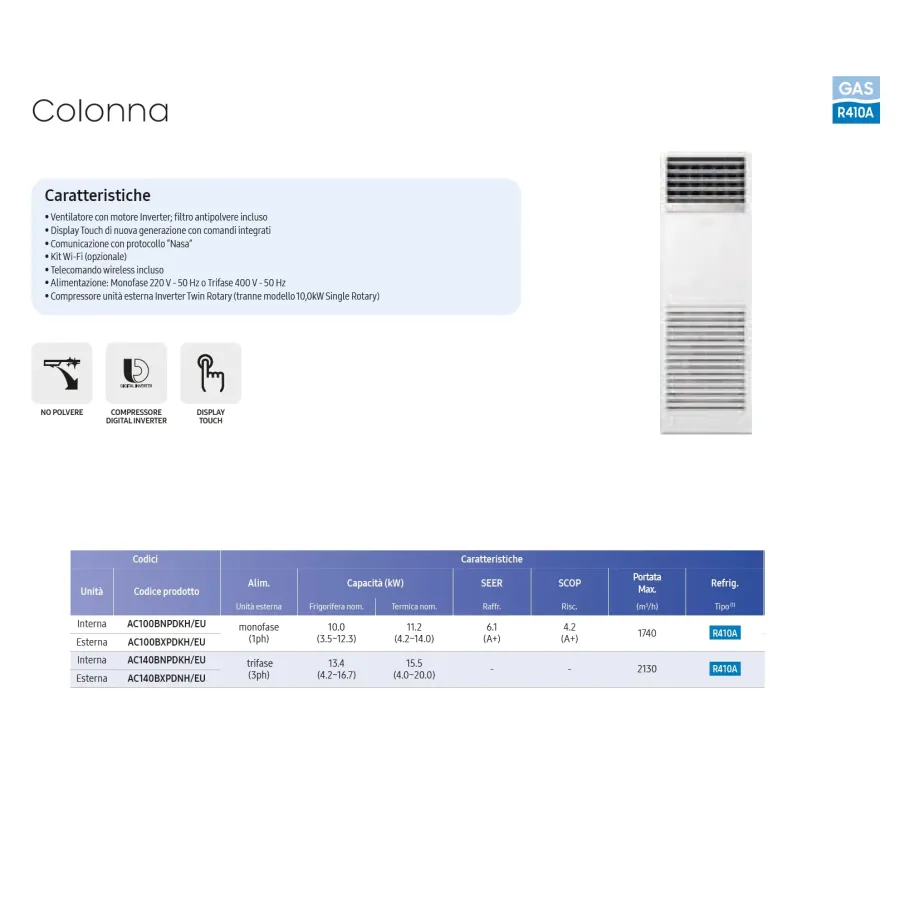 Internal column unit AC140BNPDKH/EU 48,000 BTU 14.0 kW