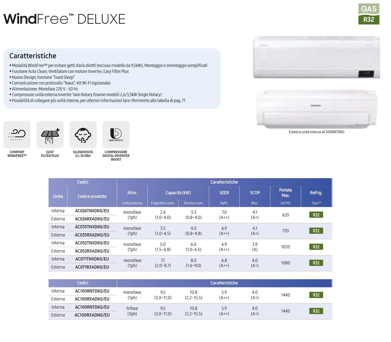- WindFree mode to avoid direct air jets (except 9.5 kW model); Easy assembly and disassembly- Auto-clean function; fan with inverter motor; Easy Filter Plus