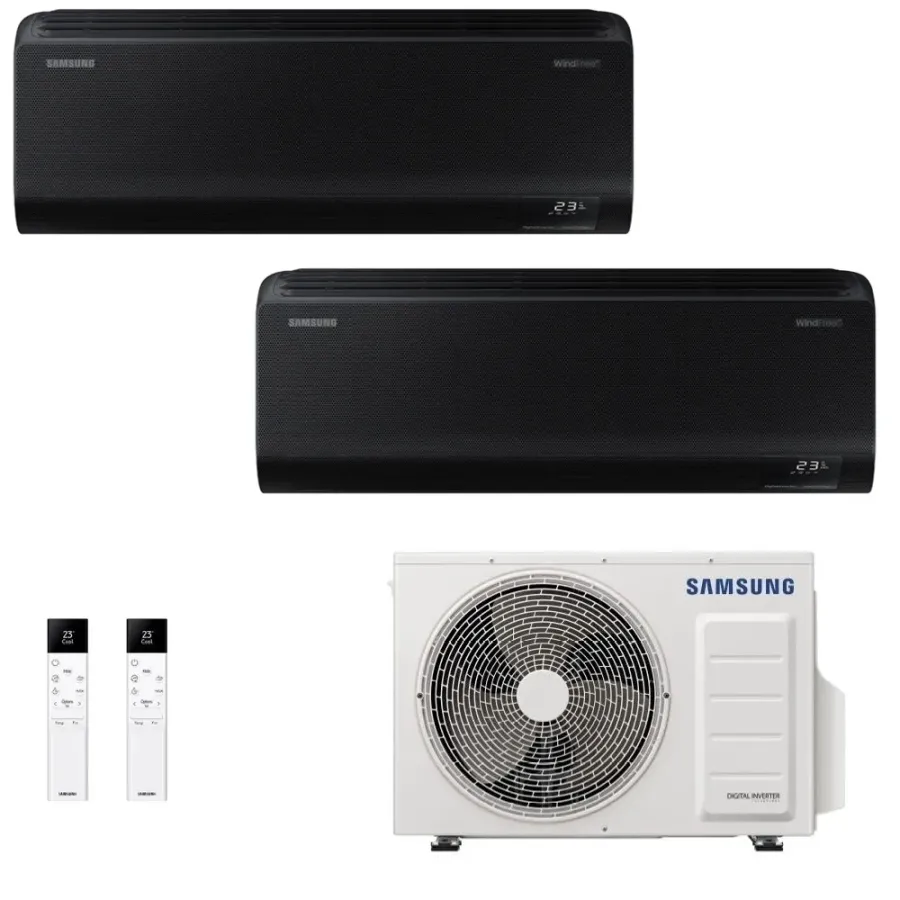 Samsung Duo Split Air Conditioner Series Windfree Black WiFi 7000+12000 Btu Heat Pump with Low Energy Consumption Inverter Technology