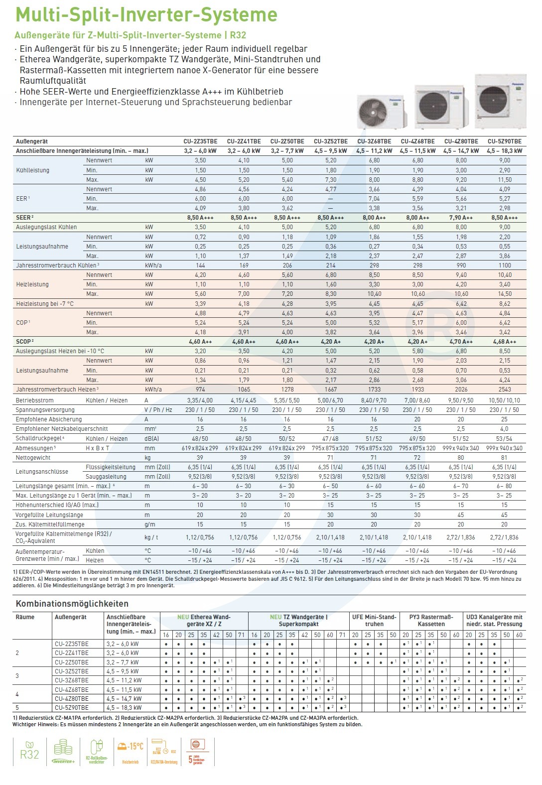 Kit consisting of the following elements: Indoor unit CS-Z35ZKEW 12000 Btu Indoor unit CS-Z35ZKEW 12000 Btu Indoor unit CS-Z35ZKEW 12000 Btu Outdoor unit CU-3Z68TBE 24000 Btu Recommended for environments: one indoor unit up to 36 sq m + one indoor unit up to 36 sq m + one indoor unit up to 36 sq m The ultimate solution for air conditioning your home: Up to three rooms with many variations and solutions.