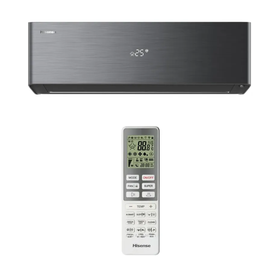 Climatiseur intérieur Hisense Energy PRO X WiFi Series 18000 Btu, combinable avec un moteur externe pour les fonctions de chauffage, avec pompe à chaleur et déshumidificateur haute performance et basse consommation.