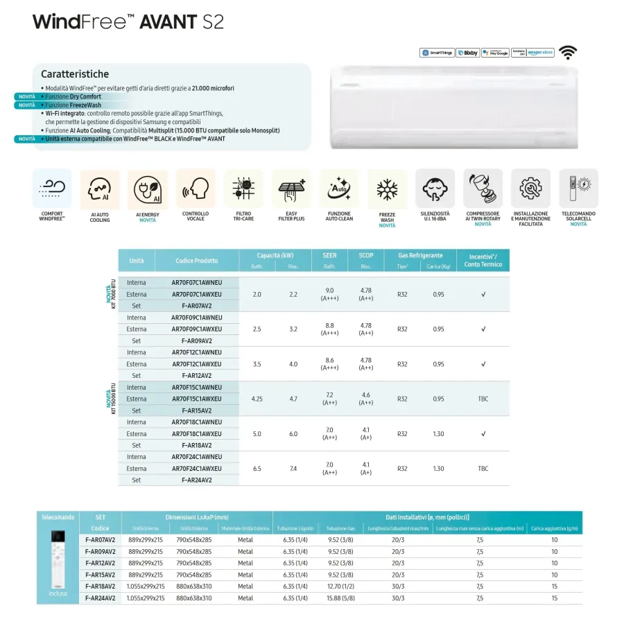 Télécharger la fiche technique du Mono Split Windfree Avant S2 (IT)