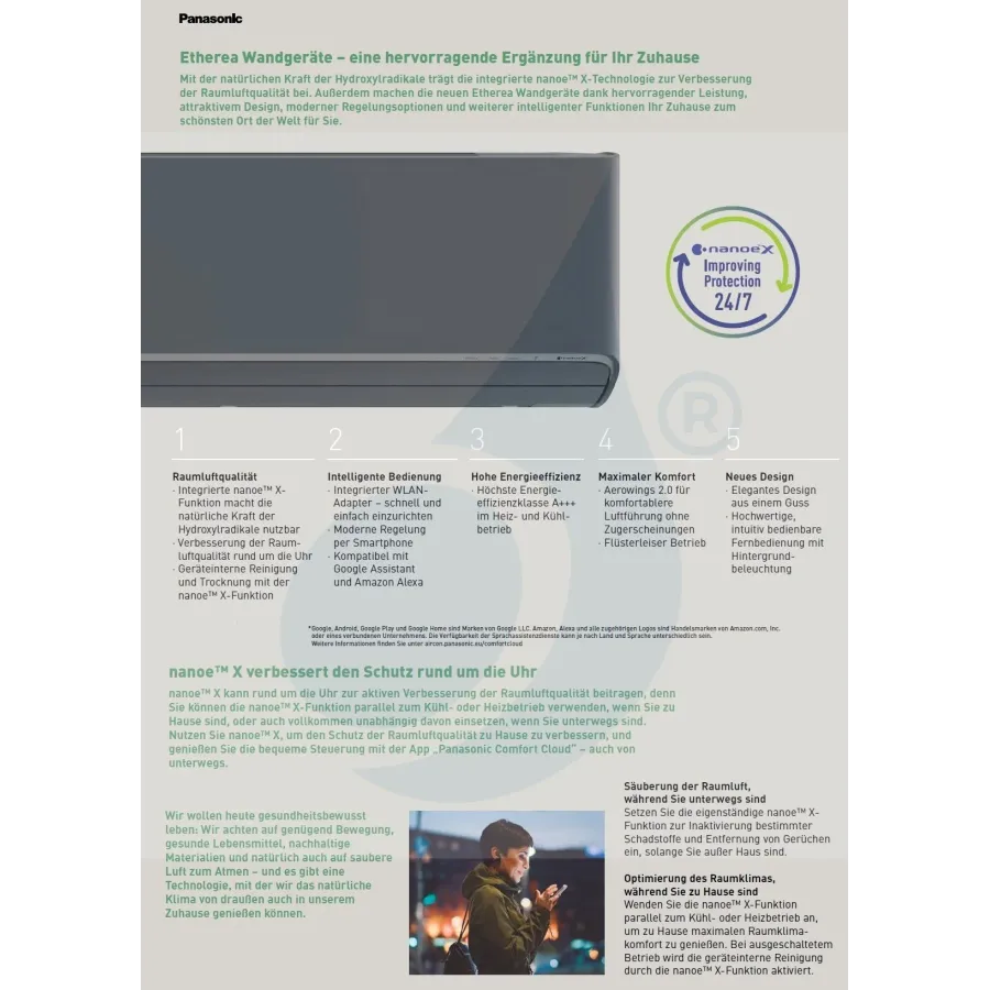 Climatiseur mural Panasonic 2,5 kW Mono Split CS-XZ25ZKEW CU-Z25ZKE XZ Etherea Argent 9000 Btu WiFi R-32 A+++ A+++