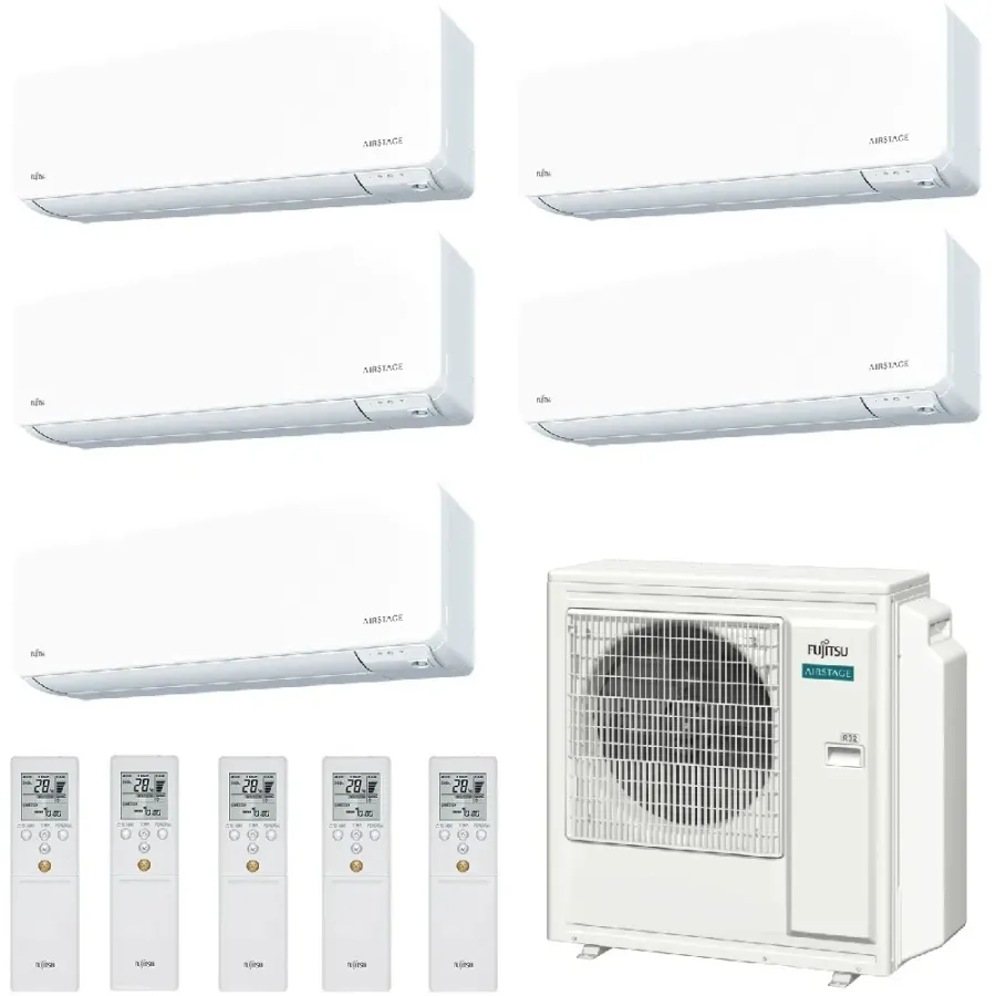 Climatiseur Fujitsu Penta Split 9+9+12+12+12 KGTG WiFi AOEG36KBTA5 2X ASEH09KGTG + 3X ASEH12KGTG Blanc R-32
