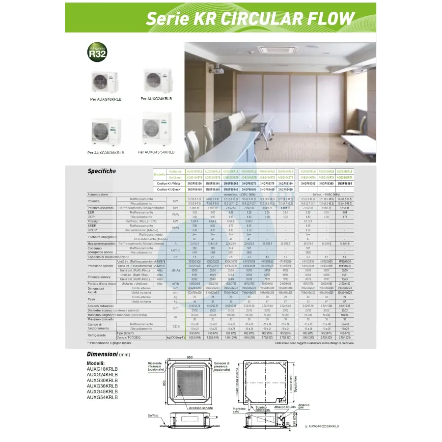 Unité intérieure AUXG30KRLB 30000 BTU Unité extérieure AOEG30KBTB 30000 BTU La solution la plus complète pour climatiser votre maison : jusqu'à cinq pièces indépendantes avec de nombreuses variations et solutions.Unité de cassette à flux circulaire KR 90x90