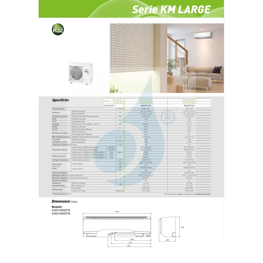 Unité intérieure ASEH30KMTB 30000 Btu Unité extérieure AOEH30KMTB 30000 Btu La solution la plus complète pour climatiser votre maison : jusqu'à quatre pièces indépendantes avec de nombreuses variations et solutions.Production de masse KM