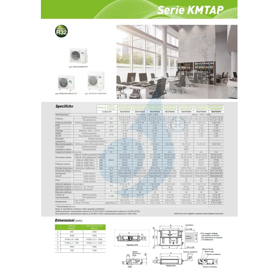 Unité intérieure ARXH54KMTAP 54000 BTU Unité extérieure AOEG54KRTA 54000 BTU La solution la plus complète pour climatiser votre maison : jusqu'à cinq pièces indépendantes avec de nombreuses variations et solutions.Série d'appareils de canal KMTAP