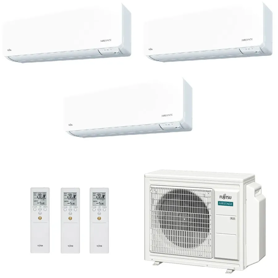 Climatiseur Fujitsu Trio Split Series KGTG WiFi 9000+9000+12000 BTU avec pompe à chaleur, faible consommation d'énergie et technologie Inverter