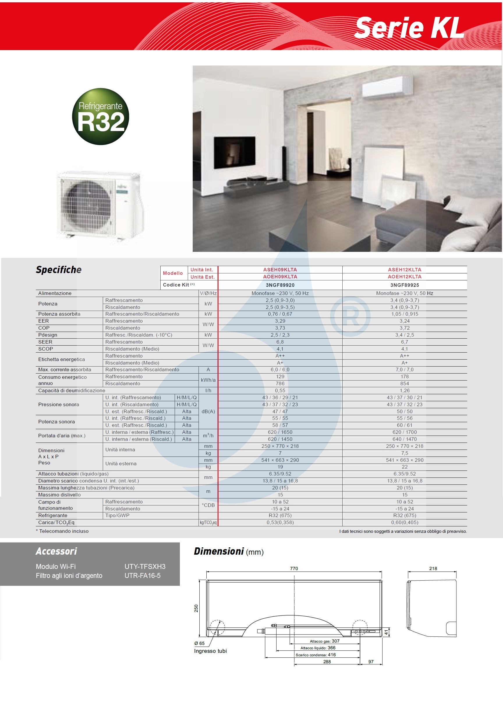 Fujitsu Mono Split KL-serie airconditioners met optionele wifi, 9000 Btu verwarming met energiezuinige warmtepomp, invertertechnologie