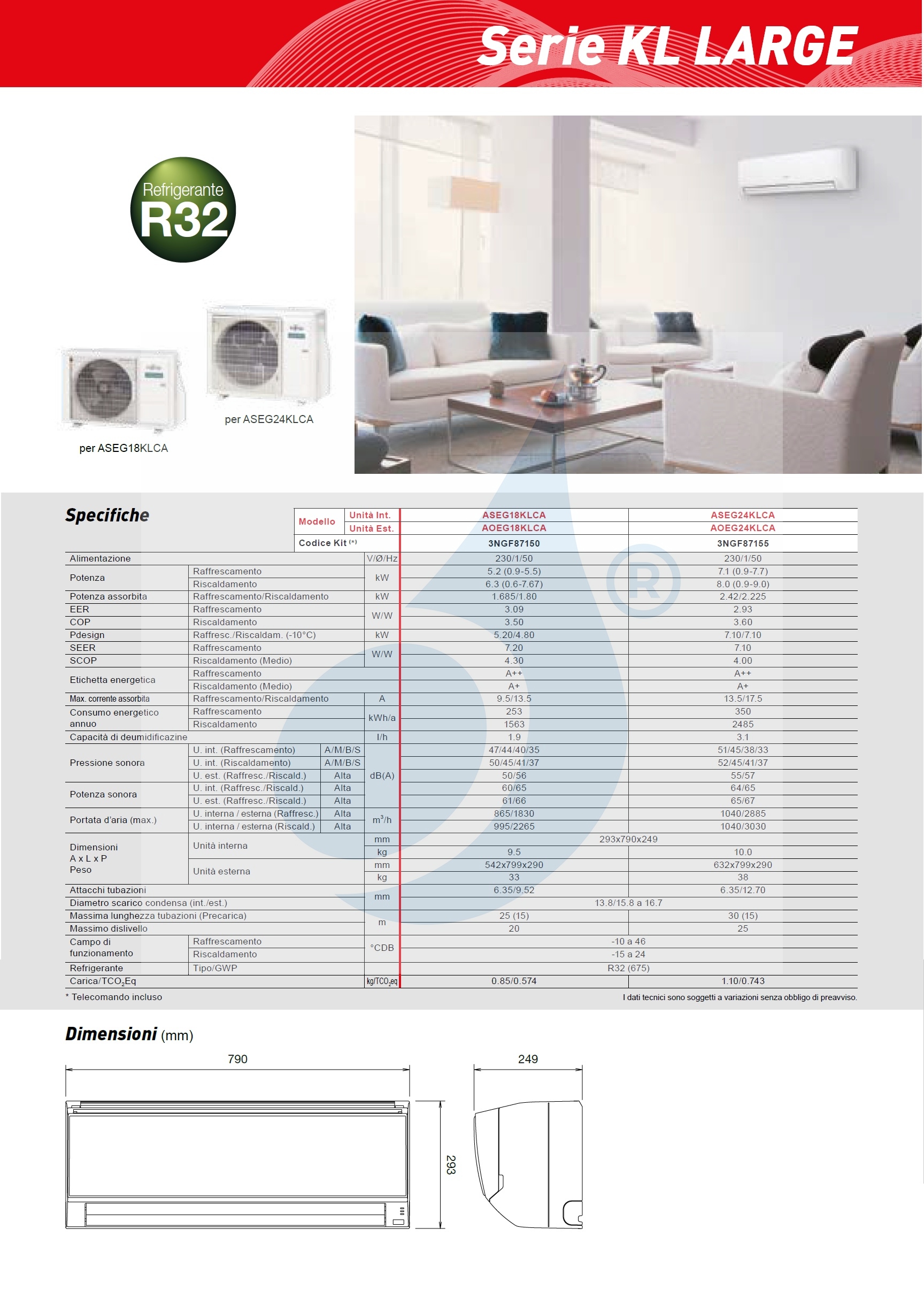 Binnenunit ASEG18KLCA 18000 Btu Buitenunit AOEG18KLCA 18000 Btu Een uitstekende oplossing voor comfort in alle ruimtes van uw huis of kantoor.KL 18-24 Serie