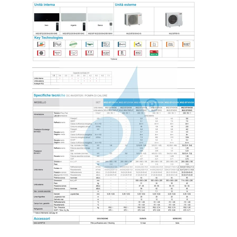 Download Technisch gegevensblad Mono Split Premium Series MSZ-EF Wandmontage Kirigamine ZEN