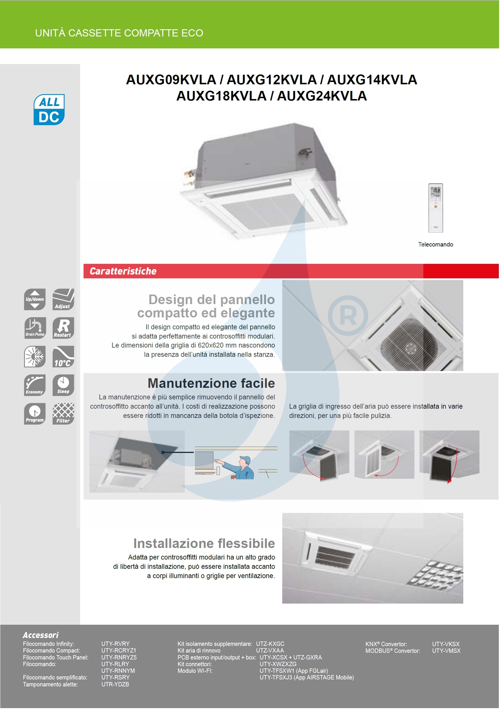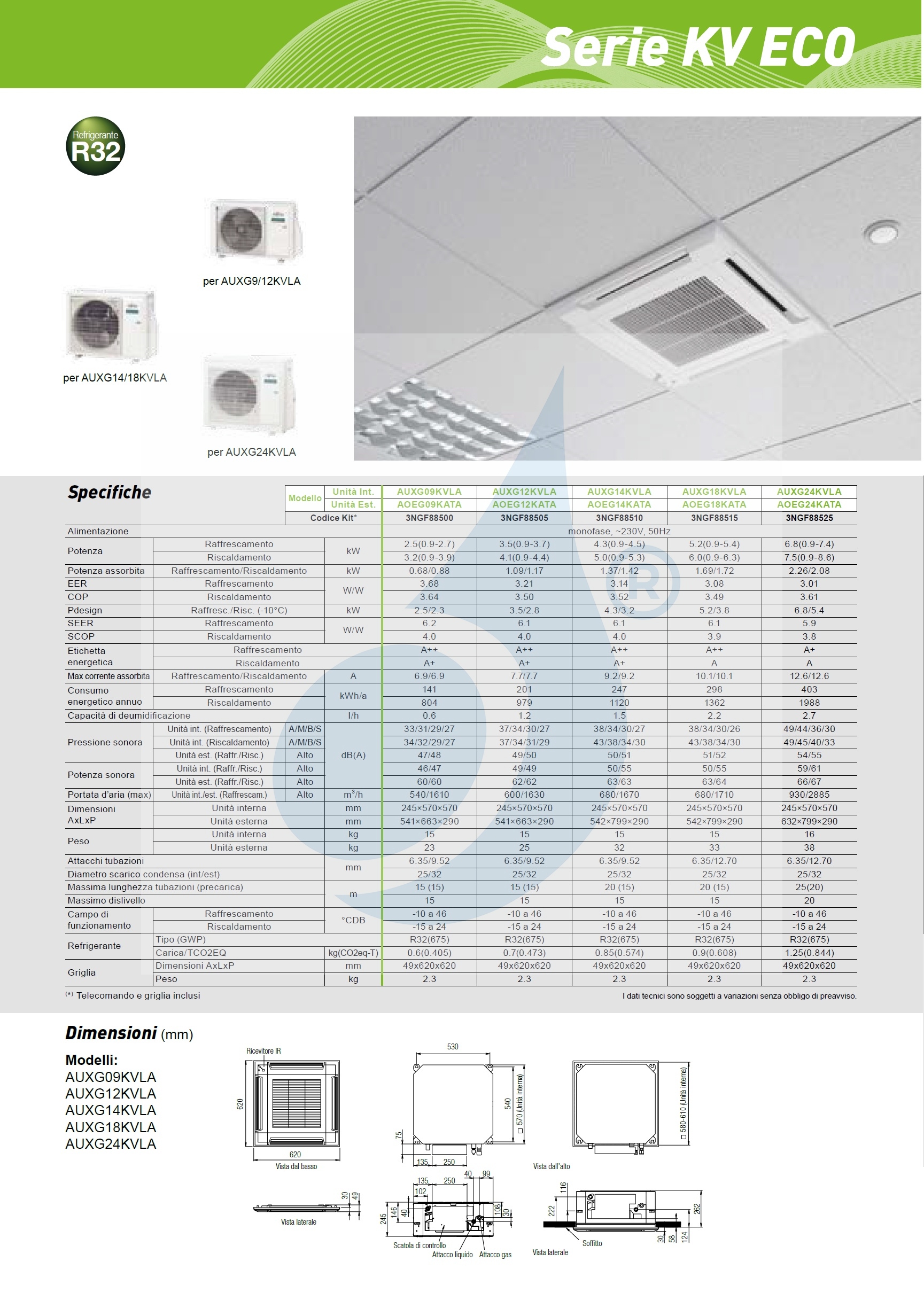Interne cassette-eenheid AUXG12KVLA 12.000 BTU 3,5 kW Compact KV-serie