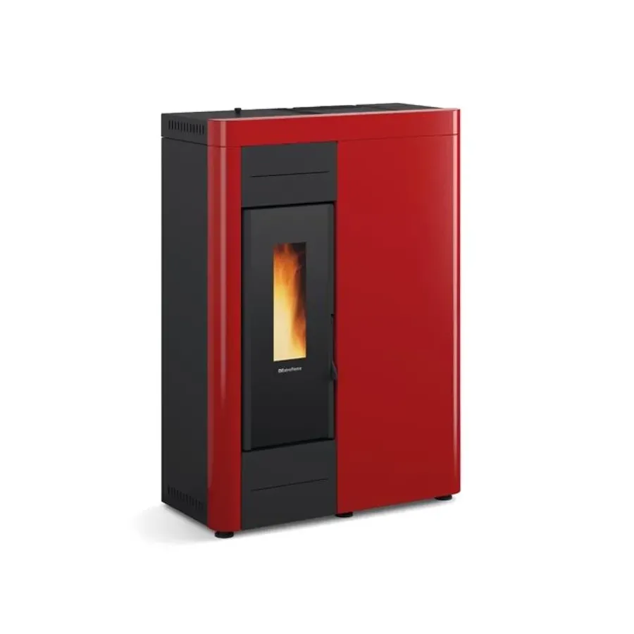 Extraflame Virna Idro 14,5 kW vermogen stalen Bordeaux pelletkachel hermetisch afgesloten slank 1294400