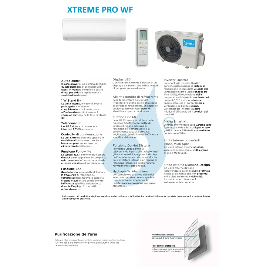 Midea Xtreme Pro WF WiFi 12000 Btu binnenunit, combineerbaar met een externe motor voor verwarmingsfuncties, met een zeer efficiënte, energiezuinige warmtepomp en luchtontvochtiger. Aanbevolen voor omgevingen Met WiFi-bediening en originele accessoires, één binnenunit tot 36 m².