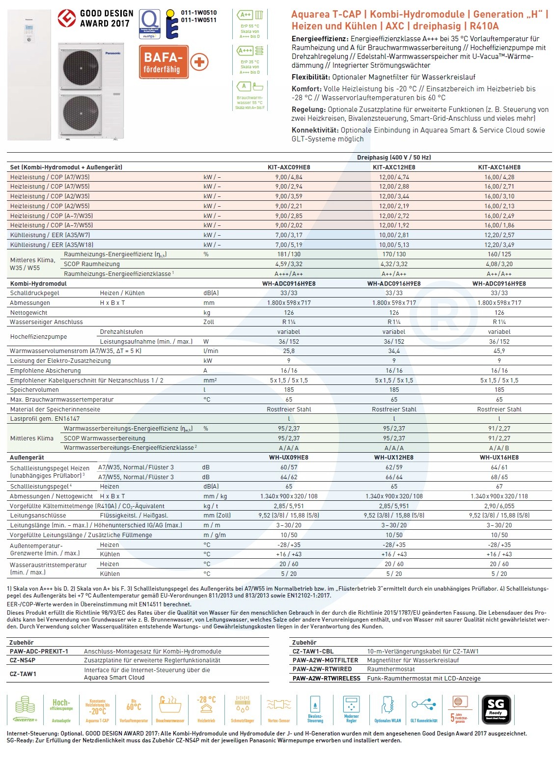 Panasonic Aquarea T-CAP warmtepomp KIT-AXC16HE8 16 kW 400 V R410-a Combi hydromodule Generatie H driefase