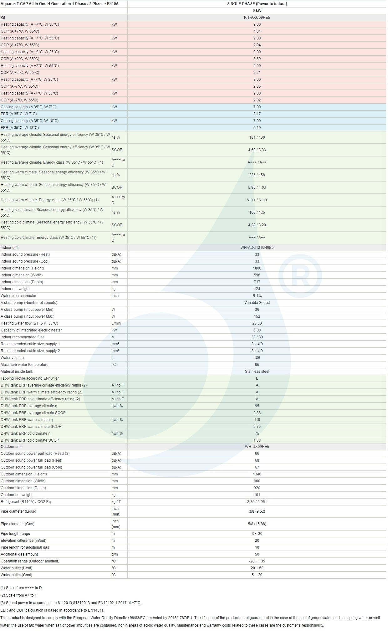 Panasonic Aquarea T-CAP warmtepomp KIT-AXC09HE5 9 kW 220 V R410-a Combi hydromodule Generatie H eenfase