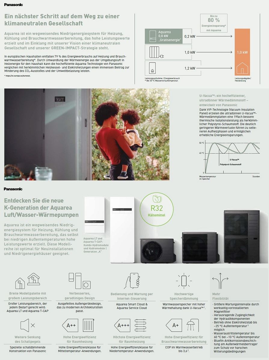 De nieuwe generatie Aquarea-warmtepompen biedt een lager geluidsniveau en meer comfort en efficiëntie. Ze zijn technologisch vergaand verbeterd, maar beschikken toch over de sterke punten van de Aquarea-serie van Panasonic.