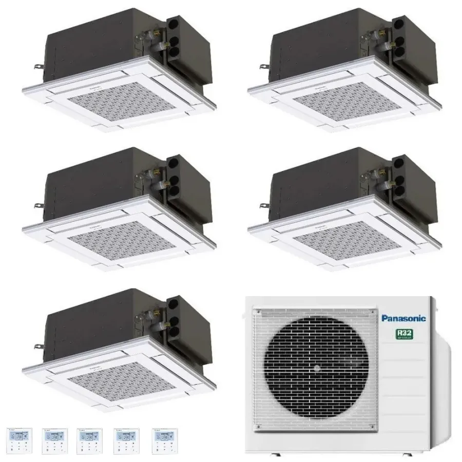 Panasonic Penta Split Cassette Unit 2,5+2,5+2,5+2,5+2,5 kW CU-5Z90TBE 4 x S-25PY3E + S-25PY3E Airconditioners R-32 60 x 60 4-weg