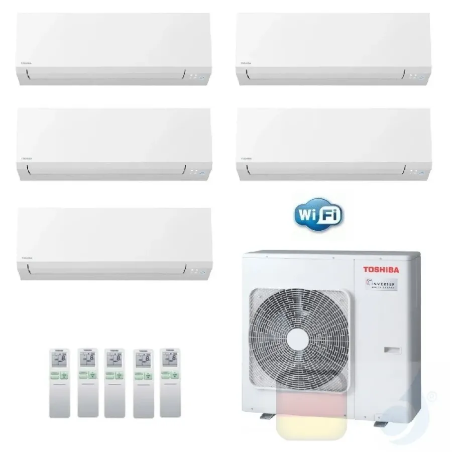 Toshiba Penta Split Series Shorai Edge Wifi 5000+5000+5000+5000+24000 Btu Hoogrendement inverter airconditioner warmtepomp met regeleenheid. Airconditioner met ontvochtiger - warm en koud.